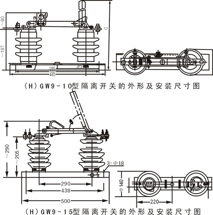 (H)GW9系列戶外高壓隔離開關(guān)是三相交流50HZ戶外高壓電器,供有電壓無負(fù)荷時(shí)分合電路之用。 (H)GW9系列戶外高壓隔離開關(guān)按外絕緣能力分為普通型和耐污型兩種,均可附裝接地開關(guān),接地開關(guān)分單接地、雙接地兩種,接地開關(guān)按承受短路電流的電動(dòng)力作用的熱效應(yīng)能力又分為Ⅰ型和Ⅱ型。