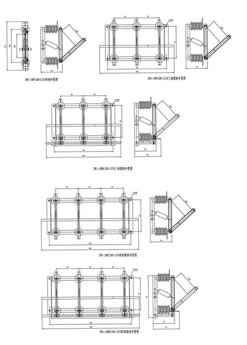 GW1型戶外單相、四相高壓隔離開關(guān)由底座、支柱瓷絕緣子和導(dǎo)電部分組成。
