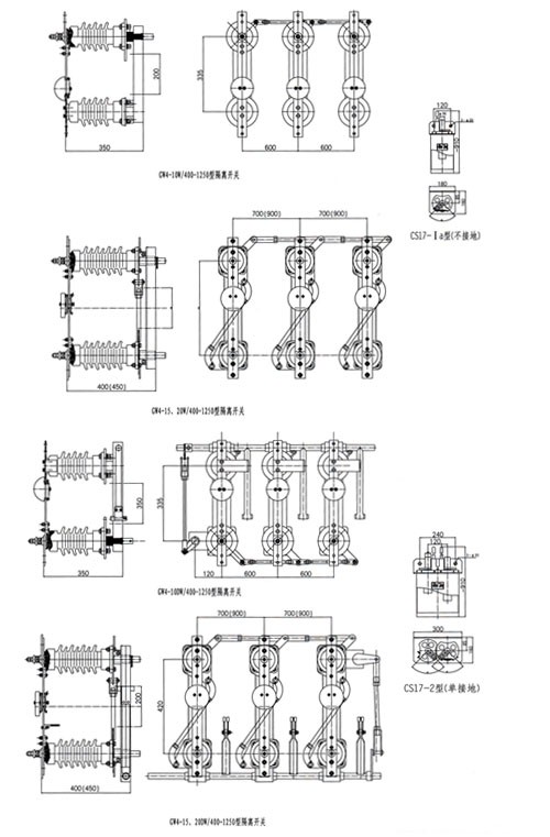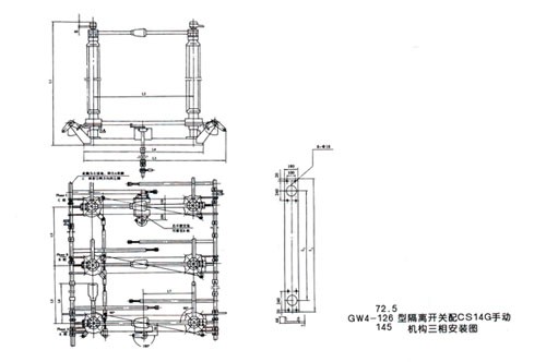 一、結(jié)構(gòu): GW4系列交流高壓隔離開關(guān)包括三個(gè)單極,每極為雙柱式結(jié)構(gòu),主要由底座、支柱絕緣子、導(dǎo)電部分組成。每極有兩個(gè)絕緣支柱,分別裝在底座兩端軸承座上,以交叉連桿連接,可以水平旋轉(zhuǎn)。導(dǎo)電閘刀分兩半,分別固定在支柱絕緣子上,觸頭的接觸在兩個(gè)瓷柱的中間。 當(dāng)操動(dòng)機(jī)構(gòu)動(dòng)作時(shí),帶動(dòng)支柱絕緣子的一柱轉(zhuǎn)動(dòng)90度,另一絕緣支柱由于連桿傳動(dòng)也同時(shí)轉(zhuǎn)動(dòng)90度,于是閘刀便向同一側(cè)方向分合。為確保隔離開關(guān)和接地開關(guān)二者之間操作順序正確,在產(chǎn)品或機(jī)構(gòu)上裝有機(jī)械聯(lián)鎖裝置,能夠確保主分一地合,地分一主合的順序動(dòng)作。