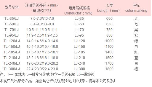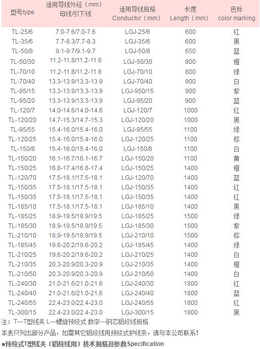 ■預(yù)絞式T型線夾(鋼芯鋁絞線用)技術(shù)規(guī)格及參數(shù)Specification