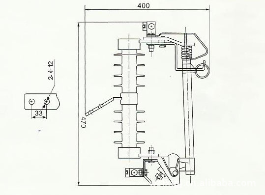 跌落式熔斷器由絕緣支架和熔絲管兩大部分組成,靜觸頭安裝在絕緣支架的兩端,動(dòng)觸頭安裝在熔絲管的兩端,熔絲管由內(nèi)層的消弧管和外層環(huán)氧玻璃管組成。拉負(fù)荷跌落式熔斷