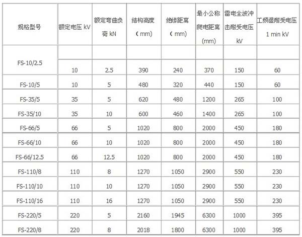 二、 復(fù)合絕緣子技術(shù)參數(shù)表