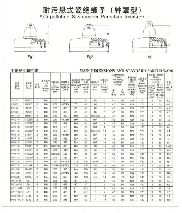 鐘罩型懸式瓷絕緣子主要型號包括: